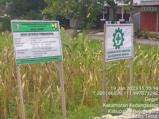 Bojonegoro/lingkaralam.com,Desa Geger kecamatan kedungadem kabupaten bojonegoro,dilihat kasap mata proyek jalan aspal yang didanai (BKKD) Bantun Keuangan Khusus Desa,Diduga pembangunannya tidak sesuai standat,Kamis (19/01/2023).