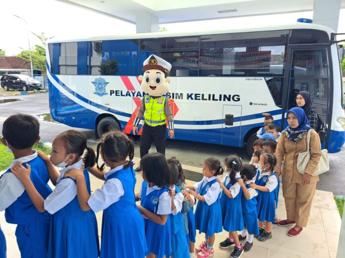 Lingkaralam.com,Blora-Kantor Satpas SIM Satuan Lalu lintas Polres Blora Polda Jawa Tengah didatangi puluhan anak dari TK Pertiwi 1 dan 2 desa Keser kecamatan Tunjungan, Senin, (27/02/2023).