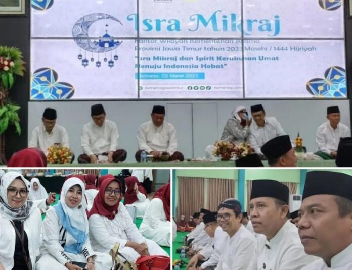 Lingkaralam.com, Tuban – Kepala Kantor Kementerian Agama Kabupaten Tuban, Dr. H. Ahmad Munir M.Hum menghadiri Peringatan Isra Mikraj Nabi Muhammad SAW 1444 H di Aula Al-Ikhlas Kanwil Kemenag Jatim, Kamis (02/03/2023).