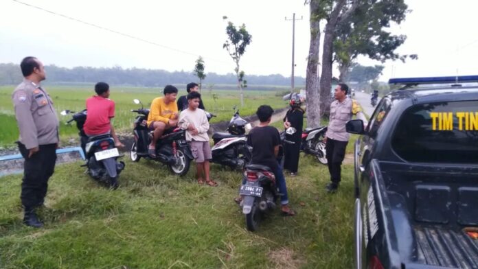 Selain menyasar lokasi berkumpulnya para pemuda, patroli Polsek Tunjungan juga mendatangi pasar krempyeng yang ada di kawasan simpang tiga desa Tunjungan