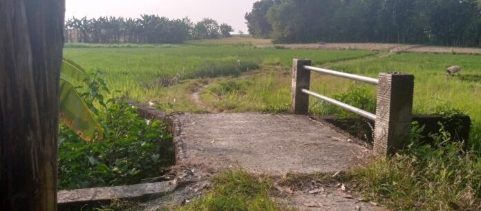 Lingkaralam com, Bojonegoro- Protes warga dusun Genengan RT 15 – RW 02 Desa Sukosewu Kecamatan Sukosewu Kabupaten Bojonegoro,Karena jembatan ini terlalu sempit akhirnya tidak bisa di lewati kendaraan roda empat beserta mesin tlaktor dan lainnya,Minggu (21/05/2023).