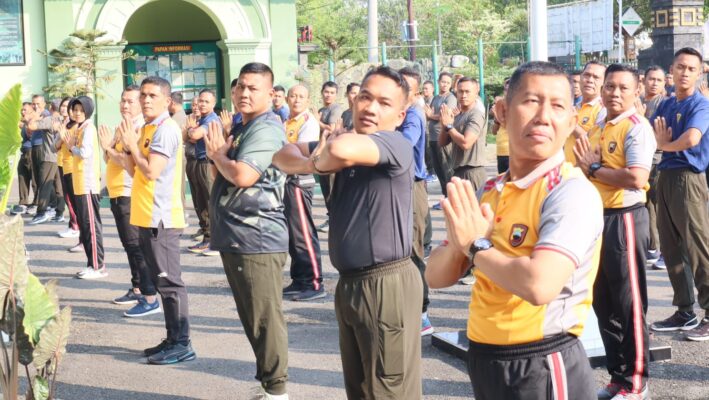Lingkaralam.com,Blora-Polres Blora – Polda Jateng – Guna meningkatkan sinergitas TNI-Polri, Polres Blora menggelar Senam bersama Kodim 0721/Blora dan yonif 410/Alugoro di Makodim 0721/Blora, Jum’at (26/5/2023).