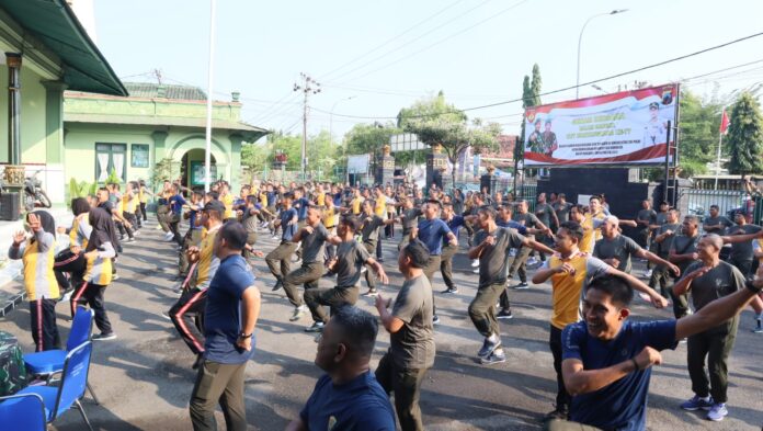 Tingkatkan sinergitas TNI-Polri, Polres Blora gelar Senam bersama Kodim dan Yonif Alugoro