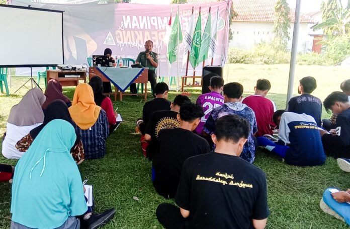 Lingkaralam.com,Bojonegoro– Bintara Tinggi Tata Usaha dan Urusan Dalam (Bati Tuud) Koramil 09/Sumberrejo Kodim 0813 Bojonegoro, Pelda Sutondo, memberikan materi tentang Ideologi Pancasila, Wawasan Kebangsaan (Wasbang) dan Bela Negara kepada puluhan peserta Pendidikan dan Latihan Pertama (Diklatama) III DKAC CBP KPP Sumberrejo.
