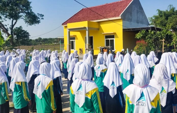 Lingkaralam.com,Bojonegoro – Bintara Pembina Desa (Babinsa) Koramil 17/Kalitidu Kodim 0813 Bojonegoro, memberikan pelatihan Peraturan Baris Berbaris (PBB) dasar kepada ratusan Santri dan Santriwati Pondok Pesantren (Ponpes) Al Aly Dusun Slembi Desa Mayangrejo Kecamatan Kalitidu, Bojonegoro, Rabu (12/7/2023) dilapangan Ponpes setempat.