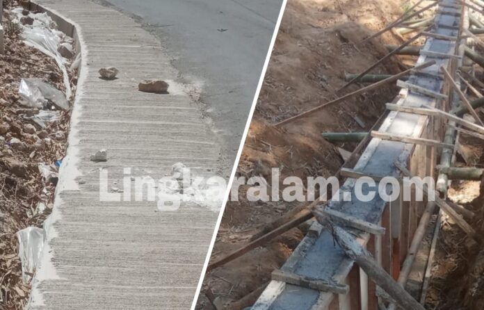 Pantauan media ini di lokasi proyek, Dua item pekerjaan pelebaran jalan dengan kontruksi cor beton dan tembok penahan tanah (TPT), Namun untuk kegiatan TPT dikerjakan tanpa menggunakan lantai kerja cor beton.