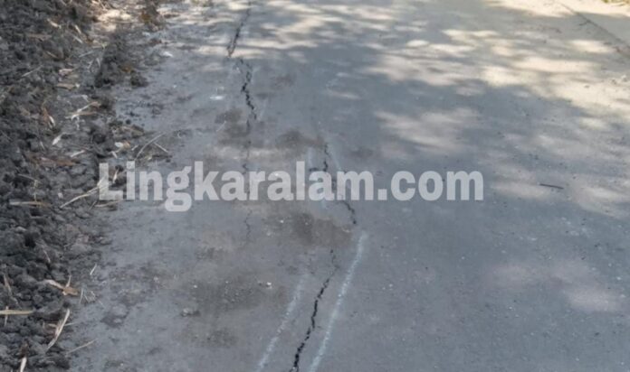 Sejumlah warga menuturkan, proyek jalan aspal ini patut dicurigai, sebab konstruksi jalan itu hampir setengahnya sudah mengalami retak retak lumayan parah , Padahal, umur proyek yang bersumber dari Bantuan Keuangan Khusua Desa (BKKD) belum genap satu tahun,