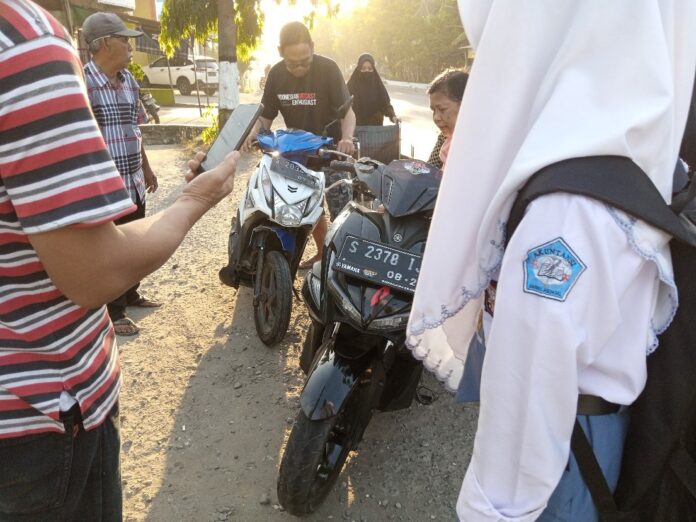 TUBAN-Akibatnya dua motor yang ditunggangi anak sekolah tabrakan di jalan raya Desa Sumberejo Kecamatan Rengel persis depan tempat praktik Dr Ida, mengakibatkan kendaraan rusak berat. Beruntung kedua penunggangnya lolos dari maut karena cuma menderita luka ringan. Keduanya juga sepakat berdamai sehingga tidak sampai bergulir ke meja hukum.