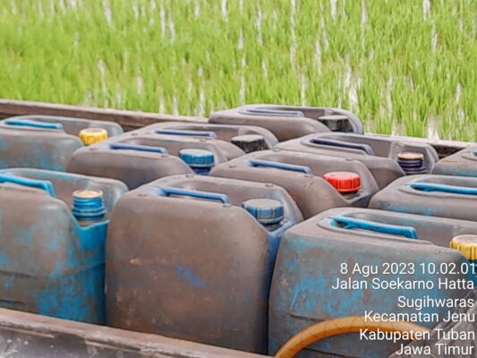 Pemantauan awak media dilokasi, Selasa (08/08/2023) sekitar pukul 10.00 WIB. terdapat kendaraan L 300 bernopol L 9492 AK sedang mengendong curigen plastik berwarna biru kisaran 12-15 yang berisi Bahan Bakar Minyak (BBM) jenis solar.