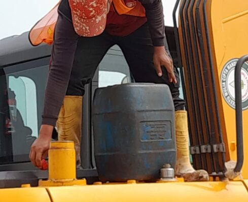 Pelaksana proyek pelebaran jalan ketika dikonfirmasi awak media terkait Bahan Bakar Minyak (BBM) yang digunakan excavator memilih bungkam.