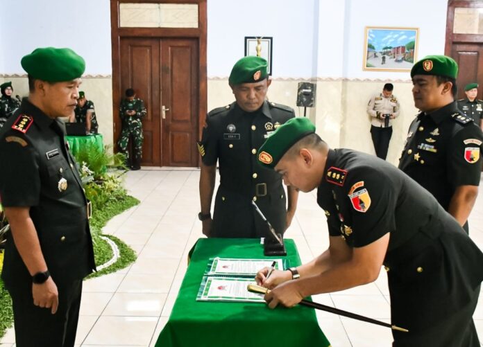 MOJOKERTO, – Tongkat Komando Komandan Kodim (Dandim) 0813 Bojonegoro, Jawa Timur, beralih dari Letkol Arm Arif Yudho Purwanto, kepada adiknya sendiri yaitu Letkol Czi Arief Rochman Hakim, S.E., M.M. Upacara Serah Terima Jabatan (Sertijab) Dandim 0813 Bojonegoro dilaksanakan pada Jum’at (18/08/2023), di Aula Korem 082 Citra Panca Yudha Jaya (CPYJ) yang dipimpin langsung oleh Inspektur Upacara (Irup) Kolonel Inf Unang Sudargo, SH., MM.