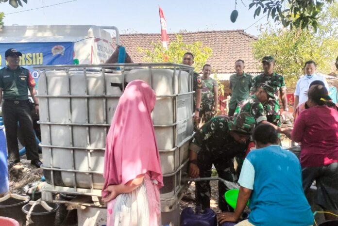 BOJONEGORO, – Bakti sosial pendistribusian air bersih sebagai wujud kepedulian kepada warga masyarakat yang terdampak kekeringan, terus dilakukan Kodim 0813 Bojonegoro bersama Babinsa jajaranya. Seperti halnya diwilayah Kecamatan Sugihwaras, dropping air bersih ini dipimpin langsung oleh Pj. Danramil 0813-04/Sugihwaras, Letda Inf Arief Setyo Oetomo, Kamis (24/08/2023).