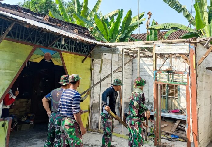 BOJONEGORO, – Wujud kepedulian terhadap masyarakat diwilayah binaan, Komando Distrik Militer (Kodim) 0813 Bojonegoro, menggelar Karya Bakti TNI Satkowil Semester II tahun 2023 dengan merehab rumah tidak layak huni milik Harnanik (65) warga Kelurahan Ledok Kulon RT.002 RW.001 Kecamatan Bojonegoro.