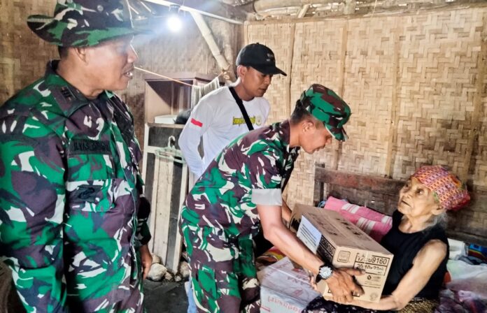 BOJONEGORO, – Momentum peringatan Hari Ulang Tahun (HUT) ke- 78 Tentara Nasional Indonesia (TNI), Bintara Pembina Desa (Babinsa) Koramil 07/Kepohbaru Kodim 0813 Bojonegoro, melaksanakan kegiatan bakti sosial pembagian paket sembako kepada warga masyarakat kurang mampu.