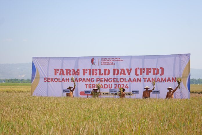 Bojonegoro, Lingkaralam.com – Dinas Ketahanan Pangan dan Pertanian (DKPP) Bojonegoro menggelar Farm Field Day (FFD) Penerapan Sekolah Lapang Pengelolaan Tanaman Terpadu (SL-PTT ). Kegiatan ini di ikuti 56 Kelompok Tani dari 28 Kecamatan,Kamis (19/9/2024).