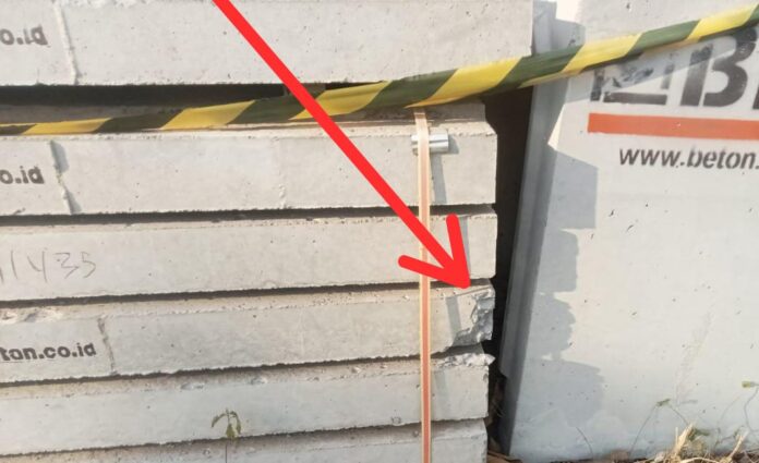 Pemantauan pewarta lingkaralam.com di lokasi pelaksanaan poyek pembangunan saluran drainase di Desa Wukirharjo Kecamatan Parengan Kabupaten Tuban tampak sebuah Cover U-Ditch pecah disisi sudut. tampak permukaan U-ditch pun kurang halus.