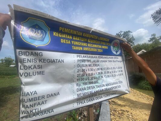 Seperti diketahui, pembangunan TPT di Desa Yungyang Kecamatan Modo Kabupaten Lamongan yang bersumber dari Dana Desa (DD) Tahun 2024, kini meninggalkan polemik karena sudah mengalami ambrol di sejumlah titik proyek TPT jalan usaha tani. Dalam realisasi pekerjaan tersebut diduga tidak sesuai dengan spesifikasi teknis maupun metode pelaksanaan.