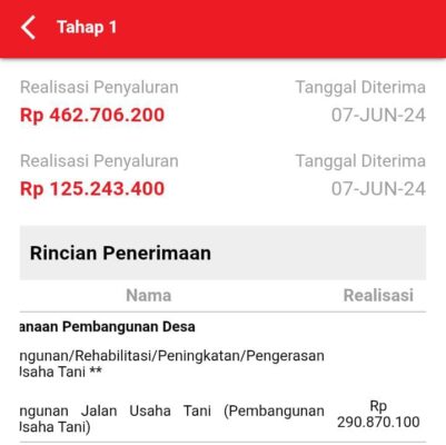 Sebelumnya, JUT tersebut hanya jalan setapak tidak bisa di akses kendaraan roda dua maupun roda empat. Pada Tahun 2024 ini di alokasikan dari dana desa (DD) tahap pertama sebesar Rp 290 juta,” kata warga yang namanya tidak mau di publikasikan.