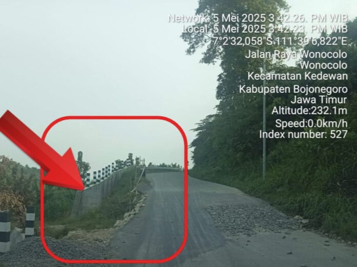 Bojonegoro, Lingkaralam.com -Bagi pengguna jalan raya Wonocolo Kecamatan Wonocolo Kabupaten Bojonegoro, Tensi kewaspadaan harus ditingkatkan ketika masuk jalan tersebut. Proyek tembok penahan tanah (TPT) Tahun 2024 ini belum selesai 100 persen. Hati hati saat mengaspal karena proyek tersebut belum di huruk.