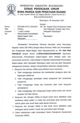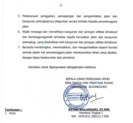 Masifnya pemasangan kabel fiber optik tersebut meskipun masih dalam proses pengajuan kepada Dinas Pekerjaan Umum Bina Marga dan Penataan Ruang Kabupaten Bojonegoro, untuk rekomendasi pemanfaatan bagian-bagian jalan.