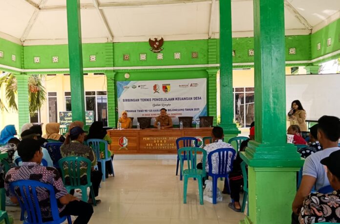 Bojonegoro, Lingkaralam.com – Dalam rangka mendukung kegiatan program TMMD atau TNI Manunggal Membangun Desa ke- 125 tahun 2025 di Desa Soko Kecamatan Temayang, Pemerintah Kabupaten (Pemkab) Bojonegoro melalui Badan Pengelolaan Keuangan dan Aset Daerah (BPKAD) menggelar Bimbingan Teknis (Bimtek) tentang pengelolaan keuangan desa di Balai Desa setempat, Senin (28/7/2025).