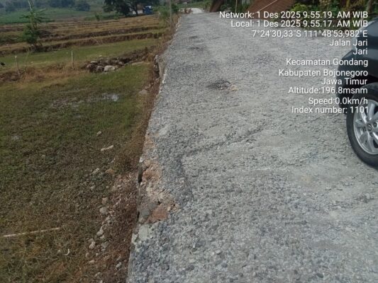 Bojonegoro, Lingkaralam.com — Pelaksanaan proyek pembangunan jalan rigid beton di Desa Jari, Kecamatan Gondang, Kabupaten Bojonegoro kembali menuai perhatian publik. Selain isu pengiriman ready mix yang diduga tidak sesuai volume, kini muncul indikasi ketidaksesuaian spesifikasi teknis pada pekerjaan pondasi serta lantai kerja.