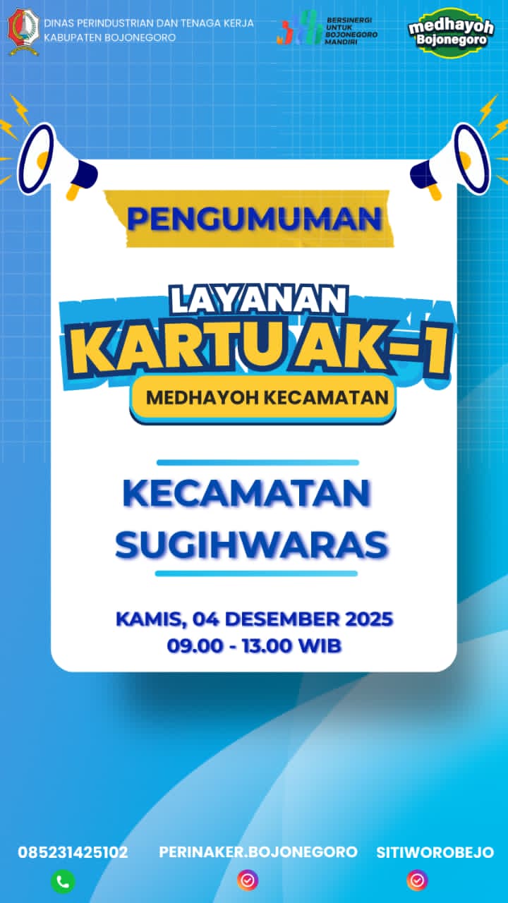 Informasi lebih lanjut mengenai jadwal layanan Medhayoh Kecamatan dapat diperoleh melalui kanal resmi Perinaker Bojonegoro.(Toyib)