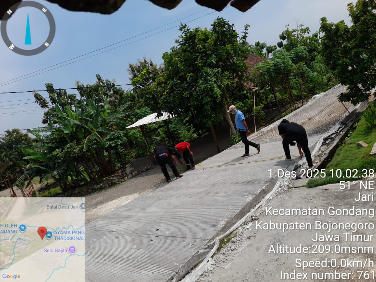 Bojonegoro, Lingkaralam.com — Suasana kerja tampak hidup di Desa Jari, Kecamatan Gondang, Kabupaten Bojonegoro. Pada pagi yang cerah, suara alat bangunan terdengar berulang memecah kesunyian, menandai proses pembangunan jalan rigit beton melalui program BKKD (Bantuan Keuangan Khusus Desa).