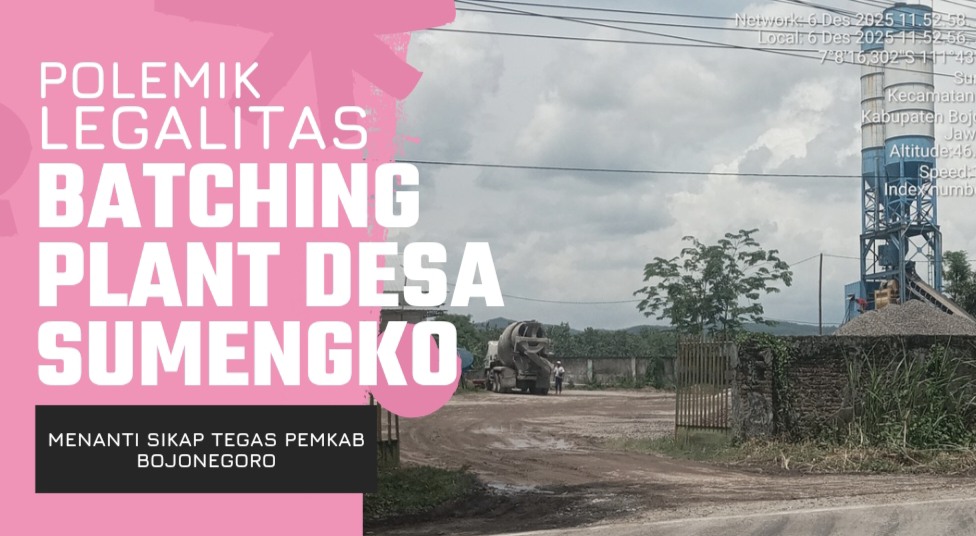 Terhitung sudah lebih dari satu bulan sejak persoalan legalitas pabrik batching plant di Desa Sumengko, Kecamatan Kalitidu mencuat ke ruang publik, namun hingga kini belum terlihat langkah nyata dari elemen Pemerintah Kabupaten Bojonegoro yang memiliki kewenangan dalam proses perizinan maupun penindakan terhadap usaha yang terindikasi melanggar regulasi.