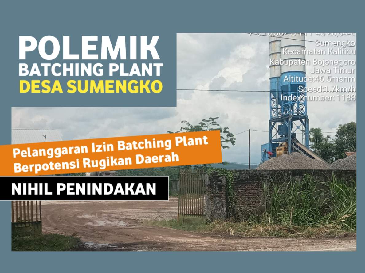 Bojonegoro, Lingkaralam.com — Dugaan operasional pabrik batching plant tanpa izin lengkap di Desa Sumengko, Kecamatan Kalitidu, tidak hanya menimbulkan persoalan kepatuhan hukum, tetapi juga berpotensi merugikan keuangan daerah akibat hilangnya penerimaan pajak dan retribusi yang seharusnya masuk ke kas Pemerintah Kabupaten Bojonegoro.
