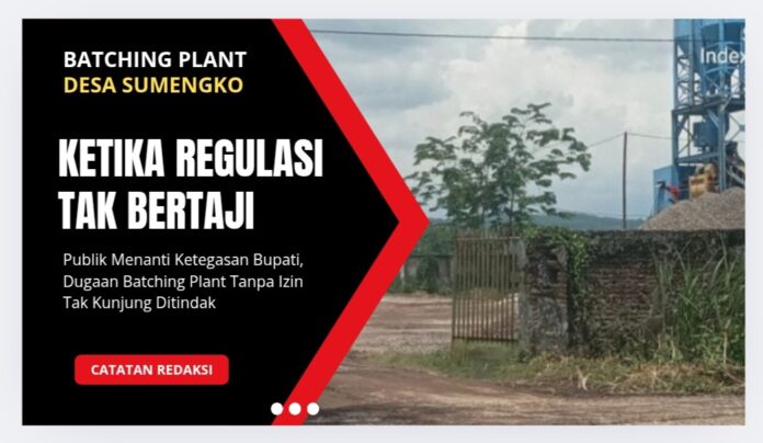 Bojonegoro, Lingkaralam.com — Macetnya respons Pemerintah Kabupaten Bojonegoro terhadap dugaan operasional pabrik batching plant tanpa izin lengkap di Desa Sumengko, Kecamatan Kalitidu, kian memantik sorotan publik.