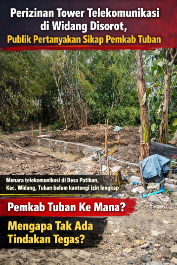 Tuban, Lingkaralam.com – Persoalan perizinan pembangunan menara telekomunikasi di Desa Patihan, Kecamatan Widang, Kabupaten Tuban, terus menuai sorotan publik. Terhitung sekitar dua pekan sejak isu ini mencuat ke ruang publik, namun hingga kini belum tampak langkah konkret dari Pemerintah Kabupaten (Pemkab) Tuban dalam merespons persoalan tersebut.