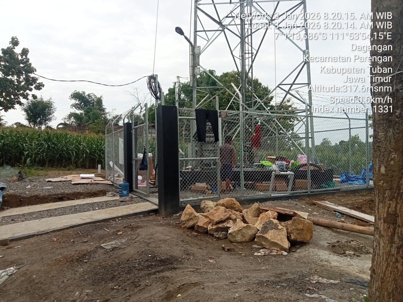 Salah satu tower yang disorot berada di Desa Dagangan, Kecamatan Parengan, Kabupaten Tuban. Berdasarkan penelusuran di lapangan, pembangunan menara tersebut diduga belum mengantongi dokumen perizinan lengkap, namun progres konstruksinya telah mencapai sekitar 95 persen.