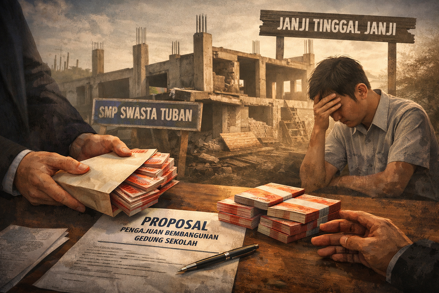 Tuban, Lingkaralam.com — Pendidikan kerap disebut sebagai ruang paling suci dalam tata kelola anggaran publik. Namun cerita yang beredar dari sejumlah Sekolah Menengah Pertama (SMP) swasta di Kabupaten Tuban justru menunjukkan ironi yang menyakitkan: harapan pembangunan sekolah diduga berubah menjadi transaksi tersembunyi.