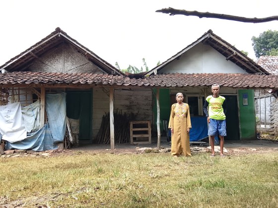 Kondisi rumah yang mereka tempati semakin menegaskan keterbatasan hidup. Bangunan sederhana dengan dinding kayu lapuk, sebagian tertutup terpal dan kain bekas, serta genteng tua yang tak lagi rapat, menjadi saksi bisu kehidupan pasangan lansia ini. Minimnya perabot dan kondisi rumah yang jauh dari kata layak menguatkan fakta bahwa mereka merupakan keluarga penerima bantuan sosial pemerintah.