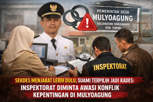 Tuban, Lingkaralam.com — Jabatan Sekretaris Desa (Sekdes) di Desa Mulyoagung, Kecamatan Singgahan, Kabupaten Tuban, diketahui telah diemban oleh seorang perempuan sebelum suaminya terpilih dan dilantik sebagai Kepala Desa. Namun demikian, kondisi tersebut tetap memunculkan pertanyaan publik terkait tata kelola pemerintahan desa, konflik kepentingan, dan etika administrasi publik.