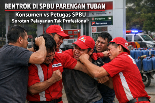 Tuban, Lingkaralam.com — Peristiwa perkelahian antara seorang warga berinisial JW dengan empat petugas Stasiun Pengisian Bahan Bakar Umum (SPBU) Parengan, Kabupaten Tuban, Sabtu (7/2/2026) sore, menyita perhatian publik. Insiden yang terjadi di fasilitas layanan umum itu memunculkan perbedaan keterangan antara warga sekitar dan pihak SPBU.