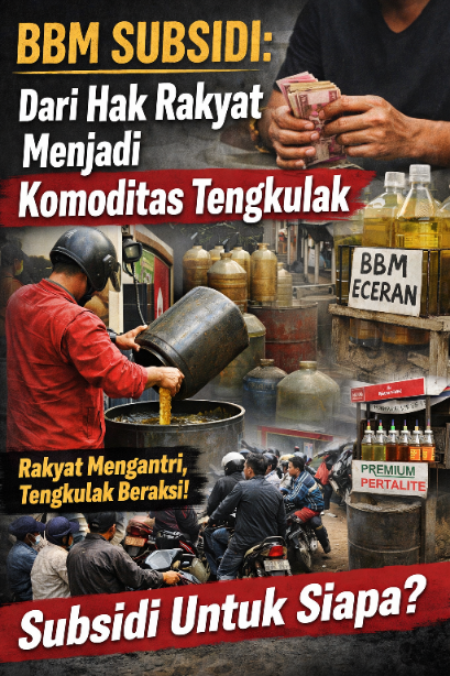 BBM subsidi bukan hadiah. Ia adalah hak rakyat. Setiap liter yang jatuh ke tangan tengkulak merupakan pengkhianatan terhadap tujuan negara dalam melindungi kelompok paling rentan.