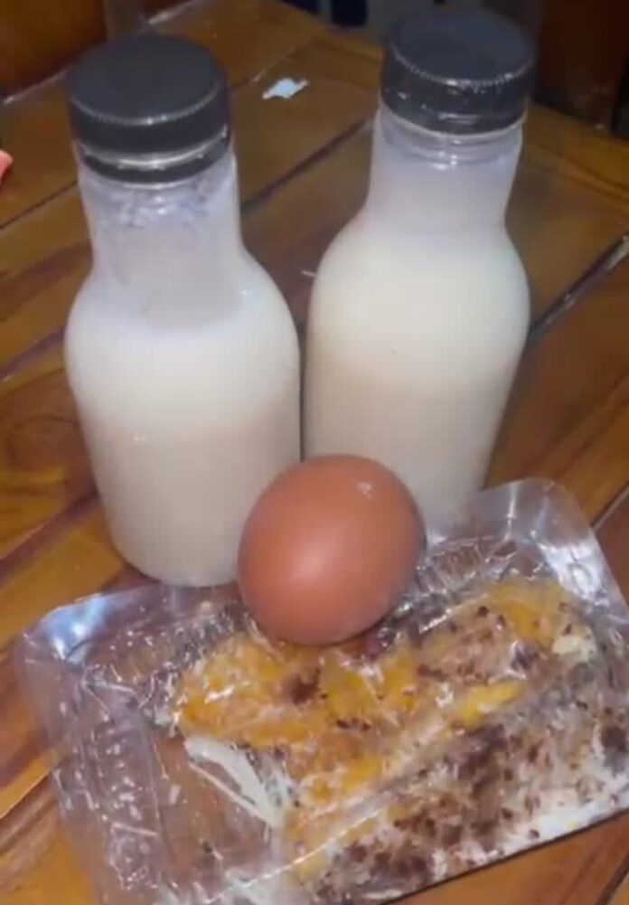 Paket makanan yang dibagikan berisi piscok (pisang cokelat), telur rebus, dan sari kedelai dalam kemasan botol. Awalnya, para siswa menyambut pembagian makanan tersebut dengan antusias. Namun suasana berubah ketika beberapa botol sari kedelai dibuka dan mengeluarkan aroma asam menyengat.