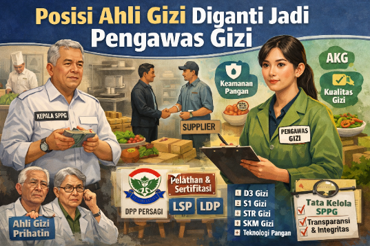 Merespons kondisi tersebut, skema rekrutmen dalam struktur SPPG mengalami perubahan. Posisi “Ahli Gizi” kini berganti nomenklatur menjadi “Pengawas Gizi”.