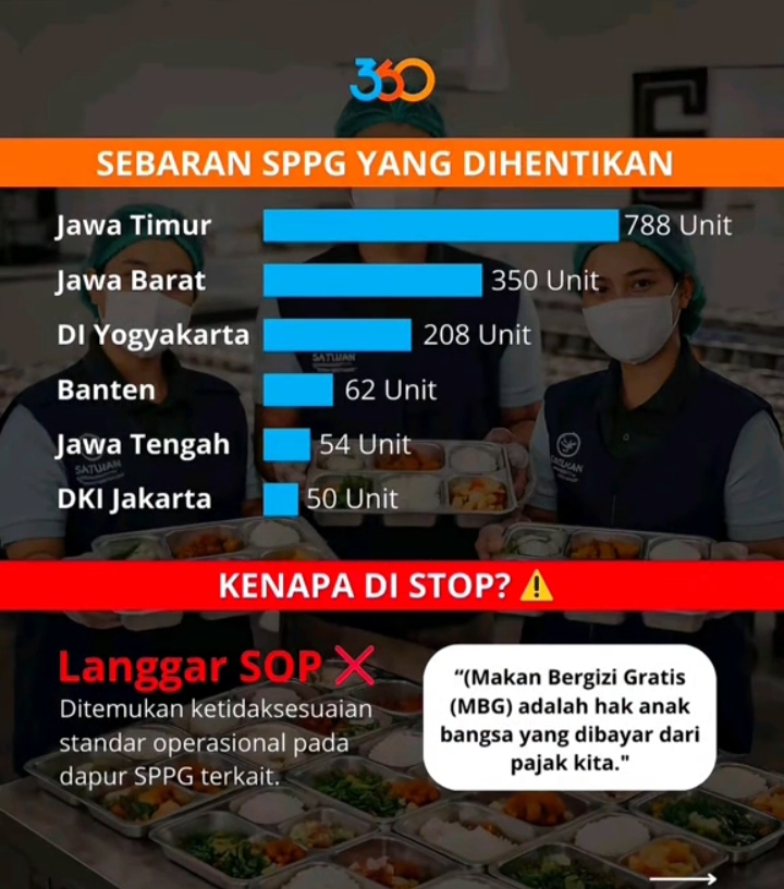 “Program Makan Bergizi Gratis adalah hak anak bangsa yang dibiayai dari pajak kita,” demikian salah satu pesan yang turut beredar dalam infografis terkait penghentian dapur SPPG tersebut.