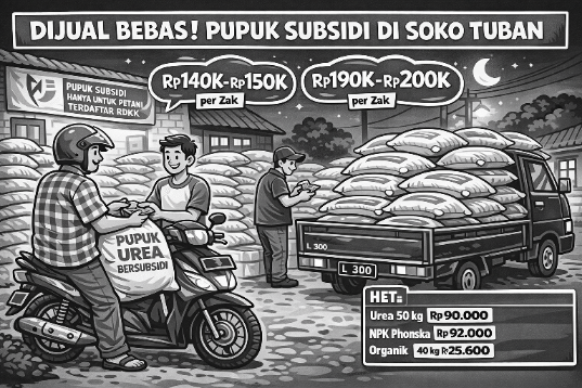 Tuban, Lingkaralam.com – Penyaluran pupuk subsidi di wilayah Kecamatan Soko, Kabupaten Tuban, menjadi sorotan publik. Sejumlah kios resmi diduga menjual pupuk bersubsidi secara bebas kepada pembeli yang tidak sesuai dengan ketentuan penerima.