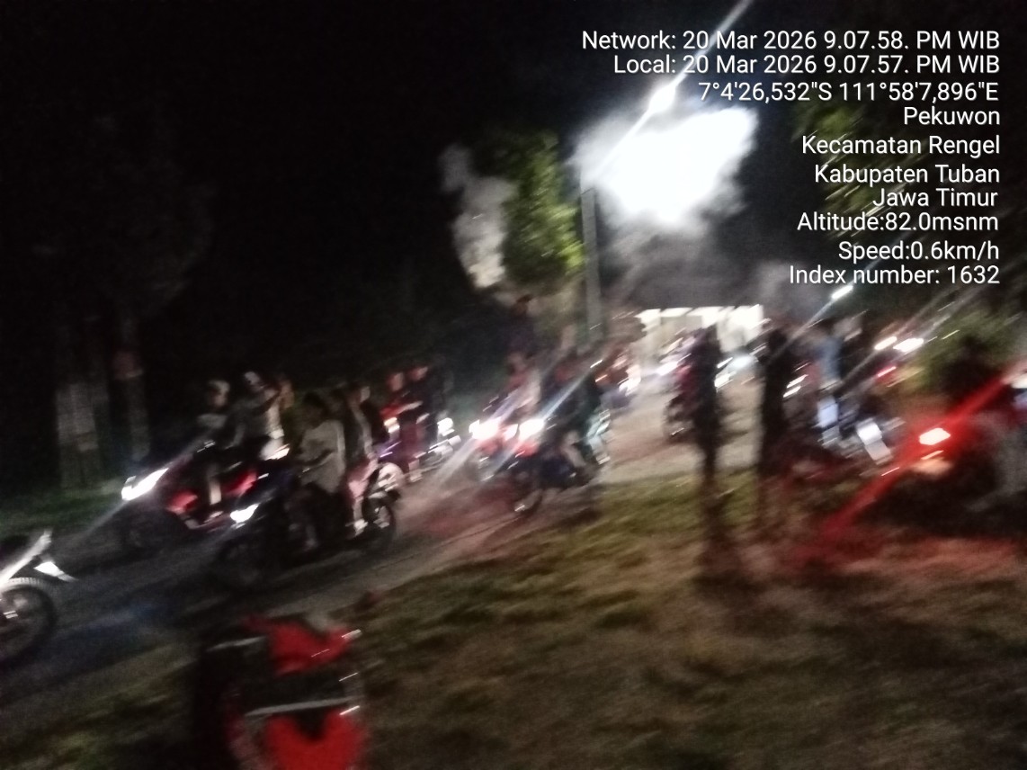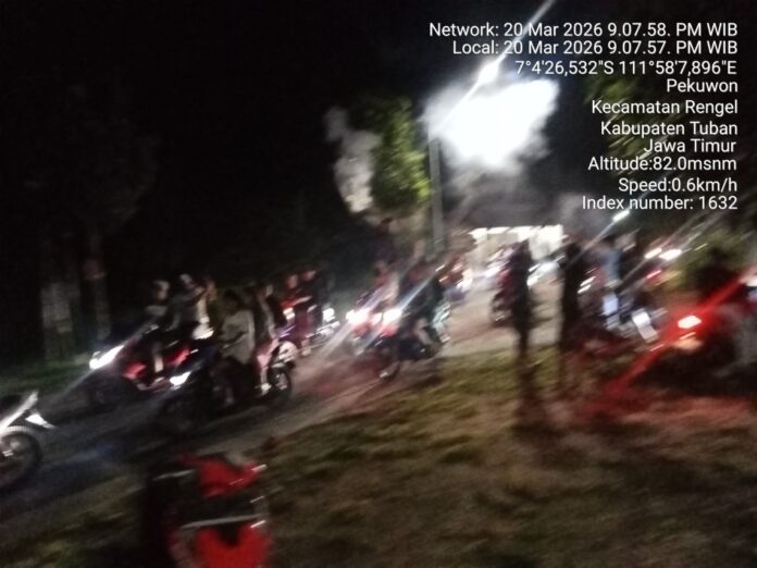 Tuban, Lingkaralam.com – Kegiatan malam takbir di jalur Nguran–Pekuwon, Kecamatan Rengel, Kabupaten Tuban, berlangsung tidak tertib dan mengganggu arus lalu lintas, Jumat (20/3/2026) malam.