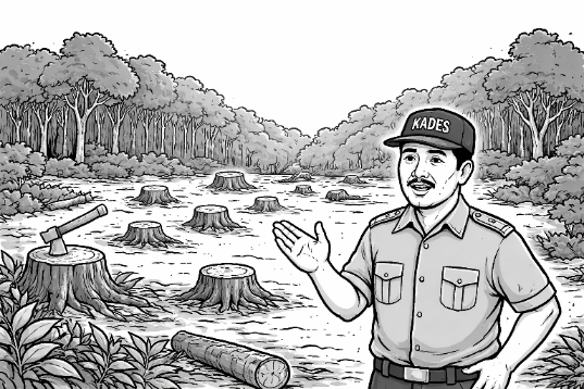 “Ya nggak, Pak. Saya malah nggak pernah nebang kayu. Masa saya kepala desa kok ikut nyolong kayu,” ujarnya saat dikonfirmasi.