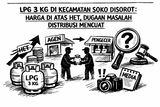 Tuban, Lingkaralam.com – Lonjakan harga gas LPG subsidi 3 kilogram menjelang Hari Raya Idul Fitri di Kecamatan Soko, Kabupaten Tuban, terus menuai sorotan publik. Hingga kini, belum terlihat langkah konkret dari Pemerintah Kabupaten (Pemkab) Tuban, dinas terkait, maupun aparat penegak hukum (APH) dalam merespons kondisi riil di lapangan.