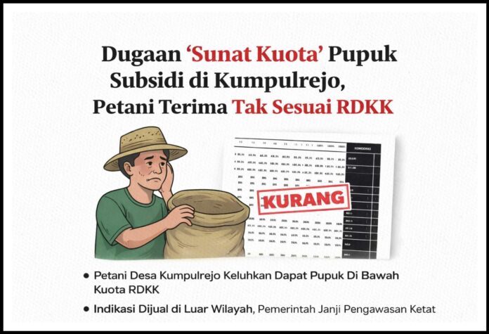TUBAN, Lingkaralam.com — Petani di Desa Kumpulrejo, Kecamatan Parengan, Kabupaten Tuban, mengeluhkan adanya ketidaksesuaian antara alokasi pupuk bersubsidi dalam Rencana Definitif Kebutuhan Kelompok (RDKK) 2026 dan realisasi yang mereka terima di lapangan.