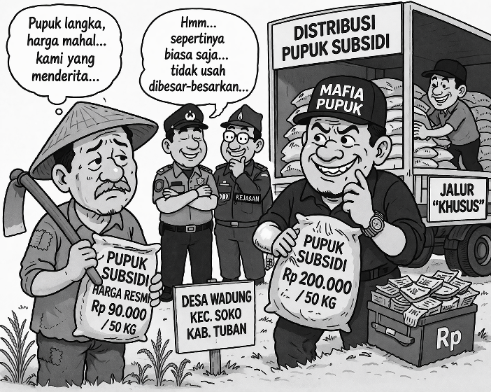 Pernyataan itu seharusnya menjadi alarm keras bagi aparat di daerah, termasuk di Kabupaten Tuban, untuk tidak menutup mata terhadap dugaan permainan pupuk subsidi yang terus dikeluhkan petani.