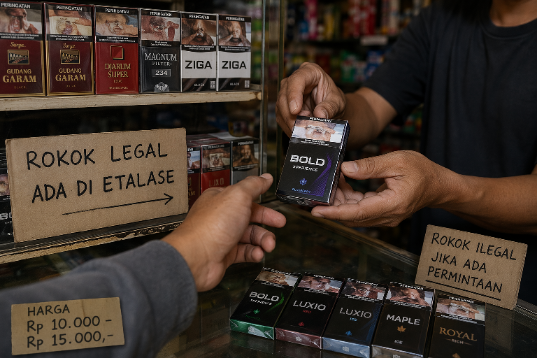 “Yang dipajang tetap rokok resmi. Tapi kalau pembeli sudah paham, biasanya ada pilihan lain,” ungkap salah satu warga yang enggan disebutkan namanya.