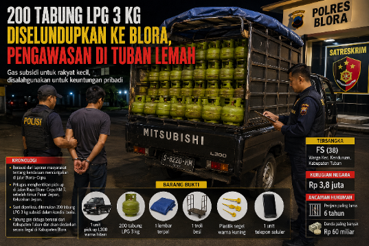 Kasus ini mencuat setelah aparat Satreskrim Polres Blora mengamankan seorang pria berinisial FS (38), warga Kecamatan Kenduruan, Tuban, di wilayah Kecamatan Jepon, Blora. Ia kedapatan mengangkut ratusan tabung LPG subsidi menggunakan kendaraan pick up yang telah dimodifikasi.
