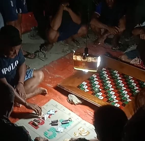 Dalam dokumentasi yang beredar, terlihat sekelompok pria tengah berkumpul di dalam sebuah ruangan dengan penerangan terbatas. Mereka duduk melingkar di lantai, memainkan permainan yang diduga kuat merupakan judi dengan menggunakan kartu dan uang sebagai taruhan.